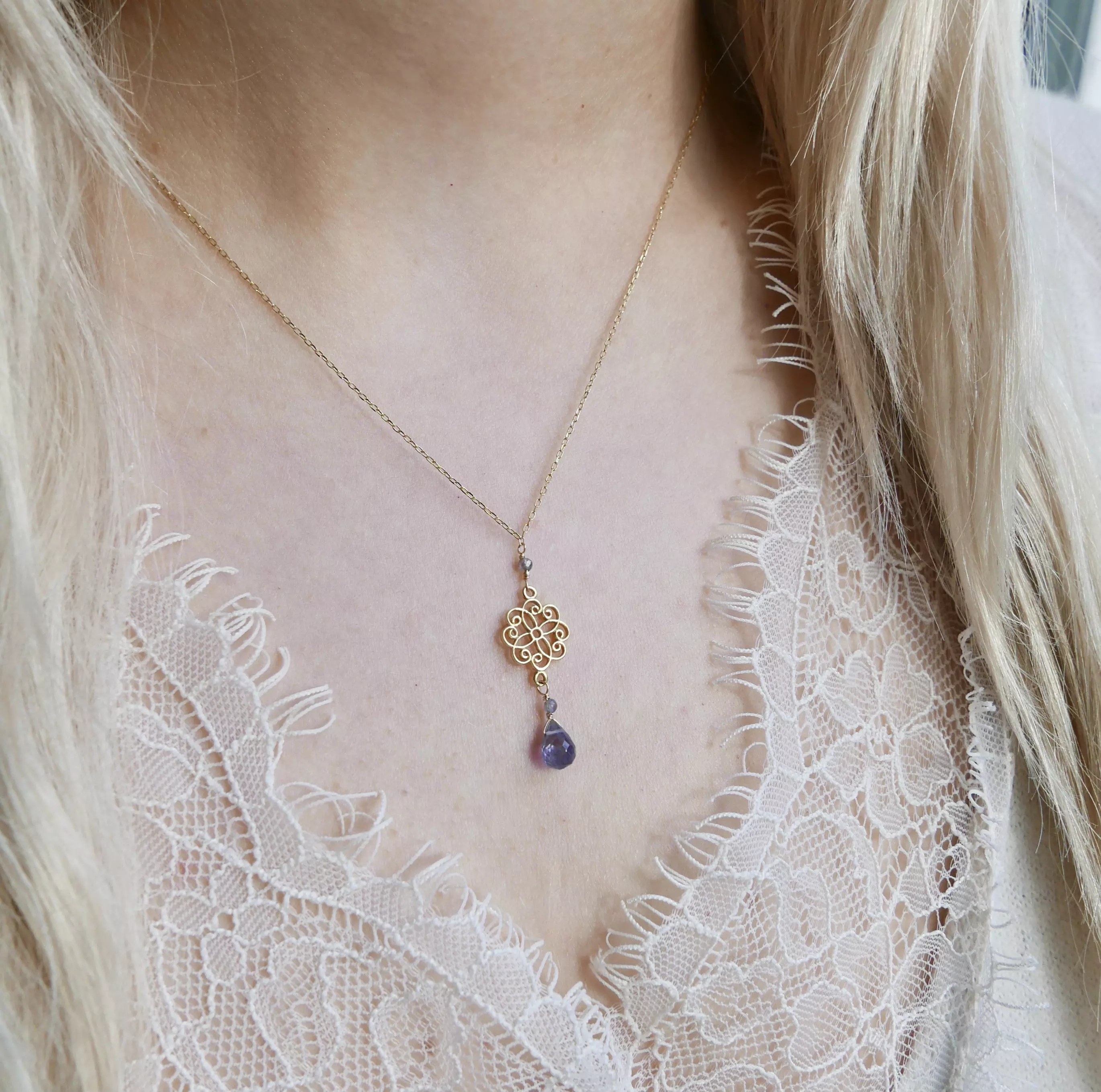 - Naszyjnik: Srebro próby 925, pokryte 24K złotem, (Więcej o naszych materiałach tutaj.)