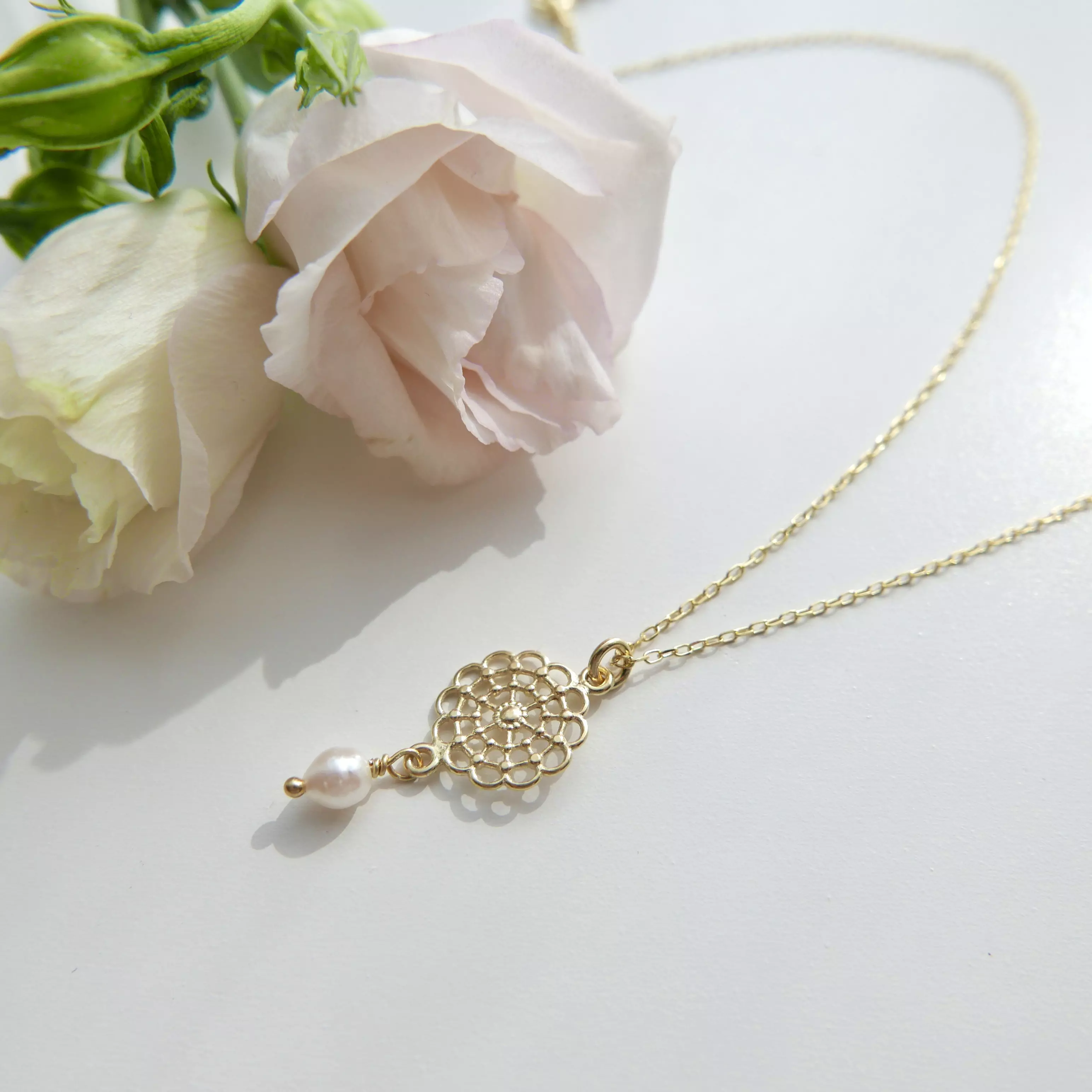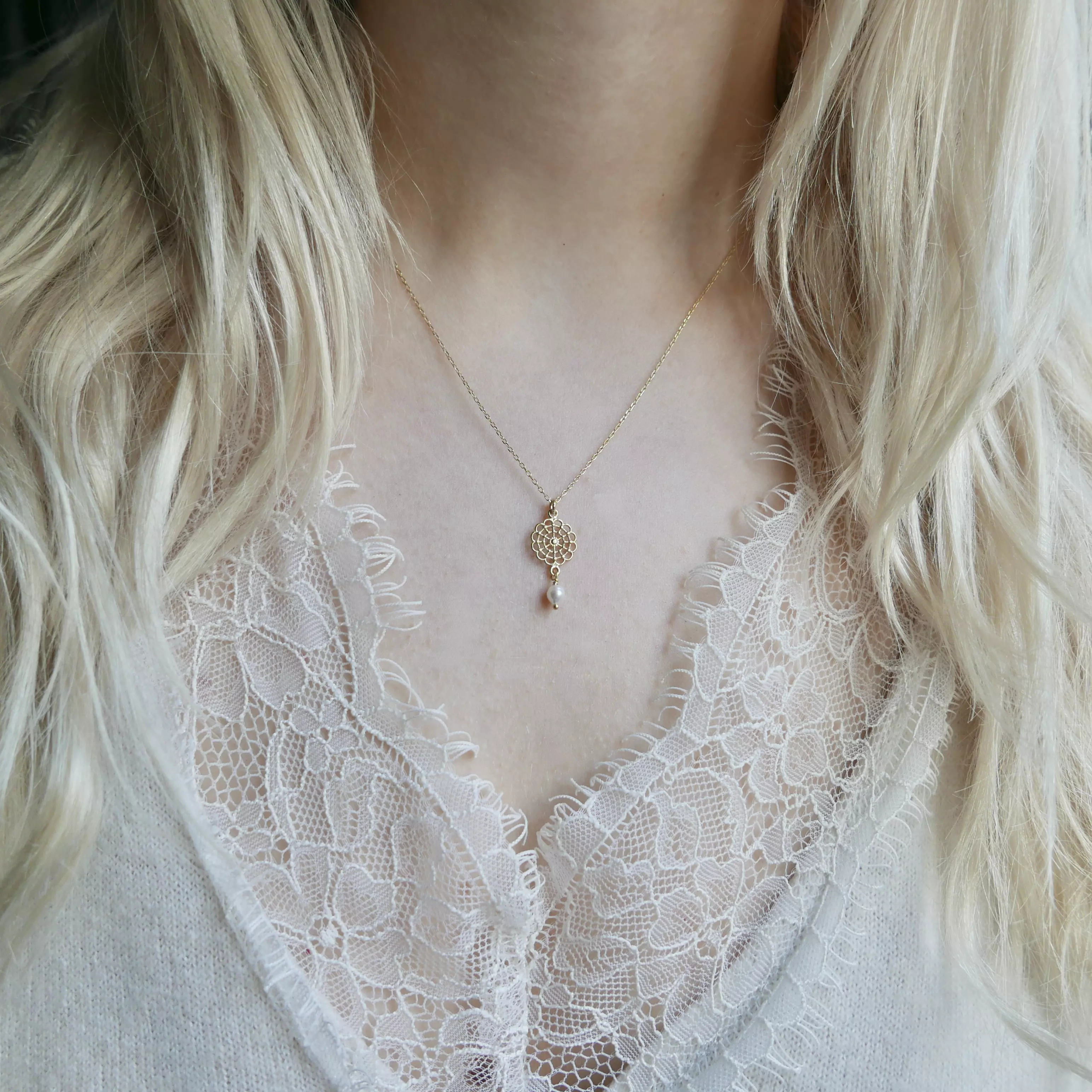 - Naszyjnik: Srebro próby 925, pokryte 24K złotem, (Więcej o naszych materiałach tutaj.)